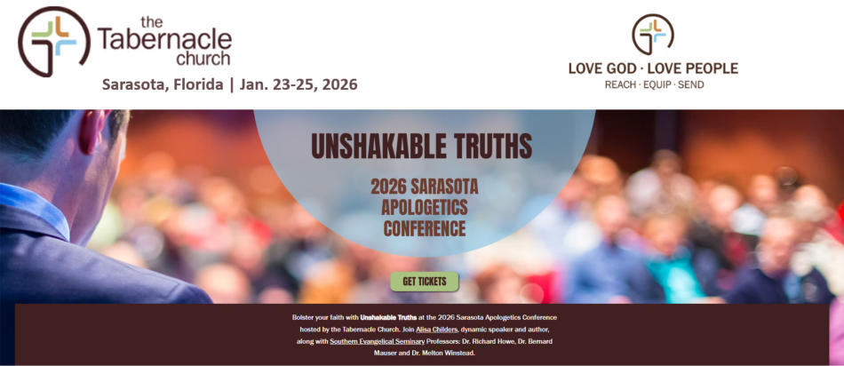 Bolster your faith with Unshakable Truths at the 2026 Sarasota Apologetics Conference hosted by the Tabernacle Church. Join Alisa Childers, dynamic speaker and author, along with Southern Evangelical Seminary Professors: Dr. Richard G. Howe, Dr. Bernard Mauser, and Dr. Melton Winstead.